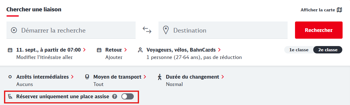 Les trains du trafic local sont souvent exploités par d’autres opérateurs qui n’acceptent pas le FIP. Dans la recherche d’itinéraire de la DB, tous les opérateurs sont indiqués. Seuls les trains avec DB dans le nom de l’opérateur dans les informations de trajet peuvent être utilisés avec FIP.